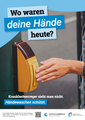 Das Plakat gibt in anschaulicher Art Hinweise zum richtigen Verhalten beim Husten und Niesen um Infektionen zu verhindern.