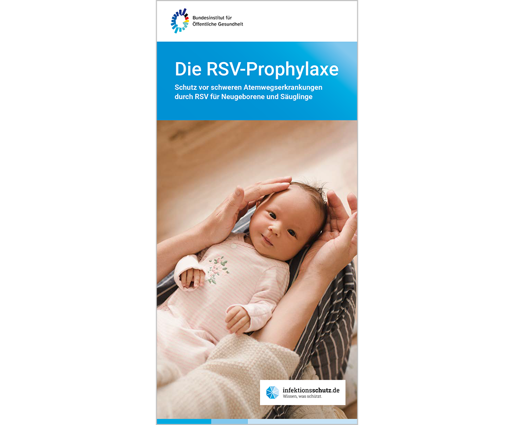 Informationsflyer (Z-Falz) für Eltern zur RSV-Prophylaxe zum Schutz vor schweren RSV-bedingten Atemwegserkrankungen bei Neugeborenen und Säuglingen